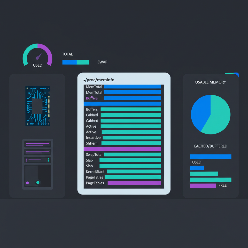 $> free -m total used free shared buff/cache available Mem: 15786 7716 583 632 7487 7102 Swap: 4095 516 3579 - meminfo 파일 확인