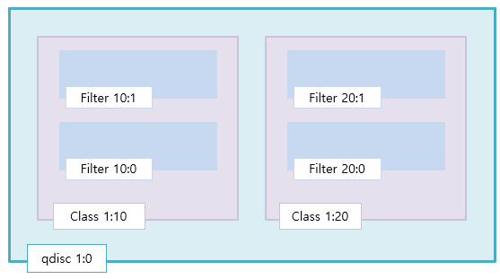 Qdisc를 통해 특정 인터페이스의 Queue를 생성하고, 하위 Class를 통해 대역폭을 설정