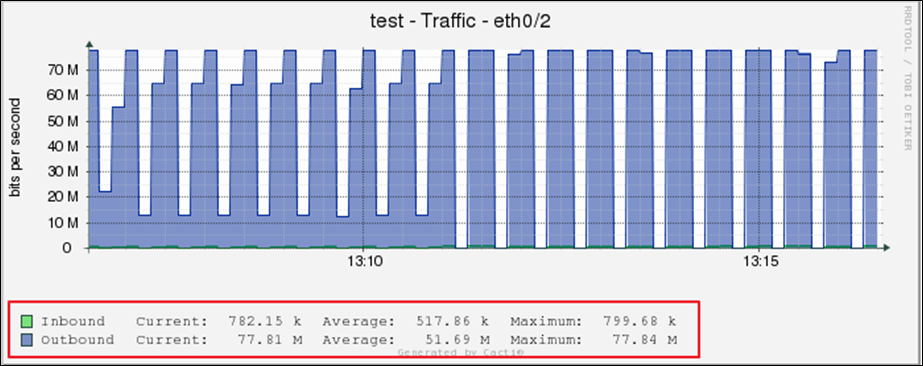 - Taffic Shaping 적용 후 (100Mbps 적용시 최대 77.84Mbps 까지 나옴)