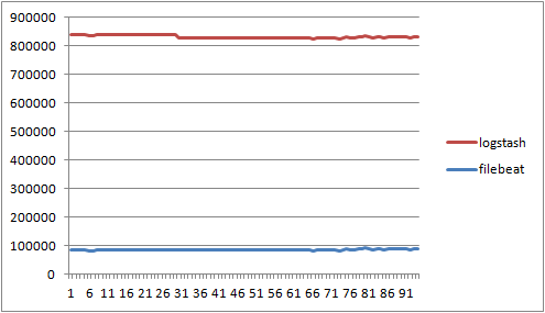 - filebeat / logstash의 RSS메모리 사용량 비교