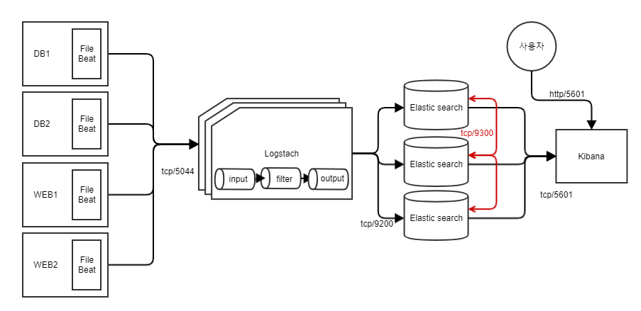 - Elasticsearch노드간의 통신을 위한 포트 : tcp/9300